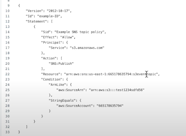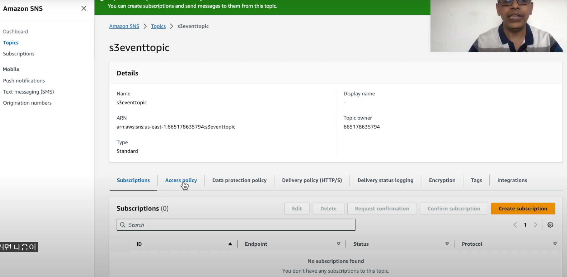 4. SNS에서 S3 알람을 받으려면 정책 설정 필요