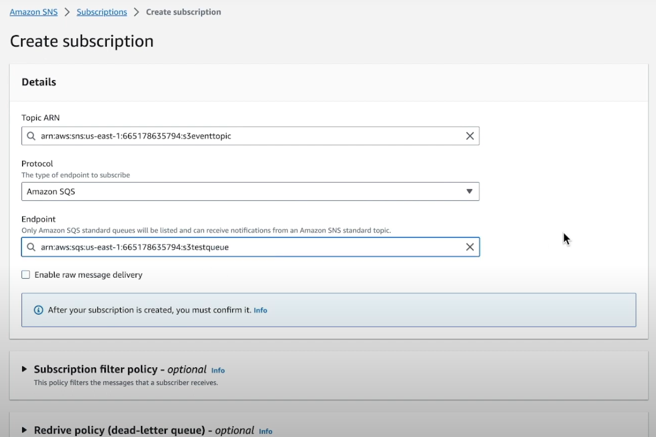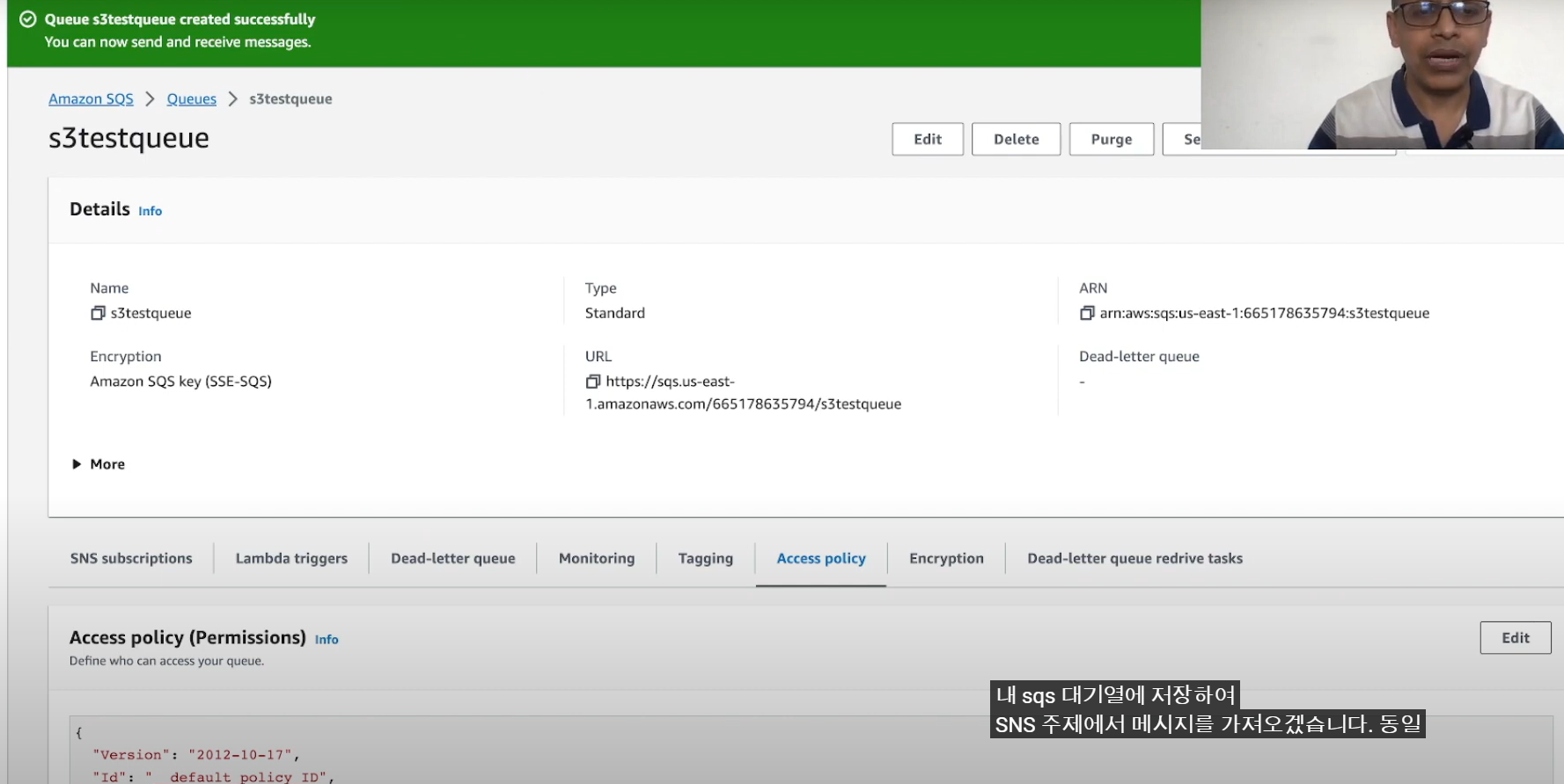 5. SQS에서 SNS주제 메시지를 가져오기 설정 (SQS 정책 설정 필요)
