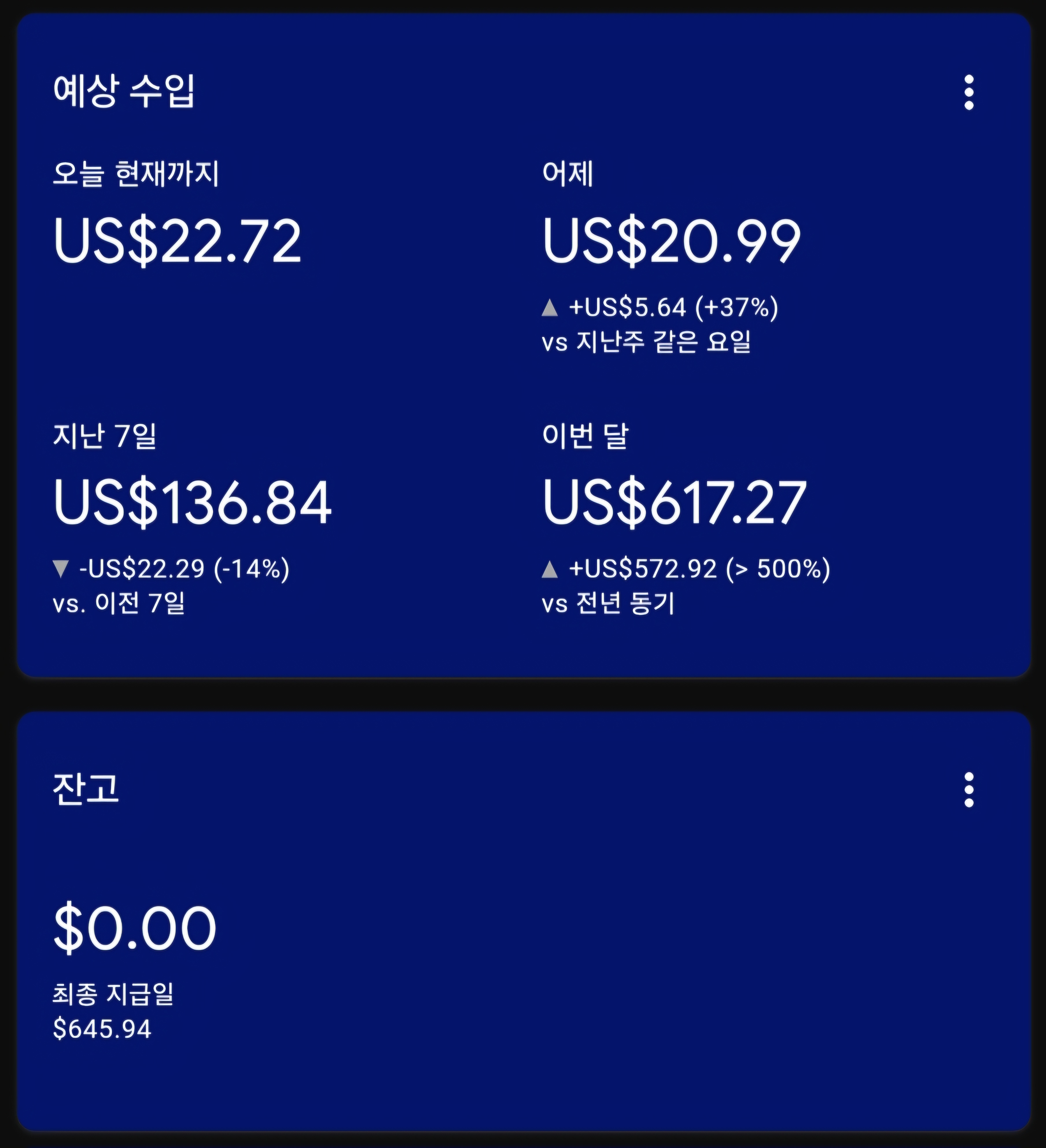 | [인터넷건물주 - 6월 월세] US $440 돌파 - AdSense & Dable 입성 6/21일!! (45) | 2024.06.21 |