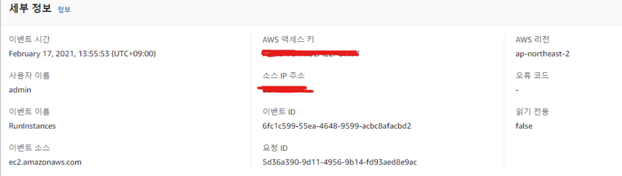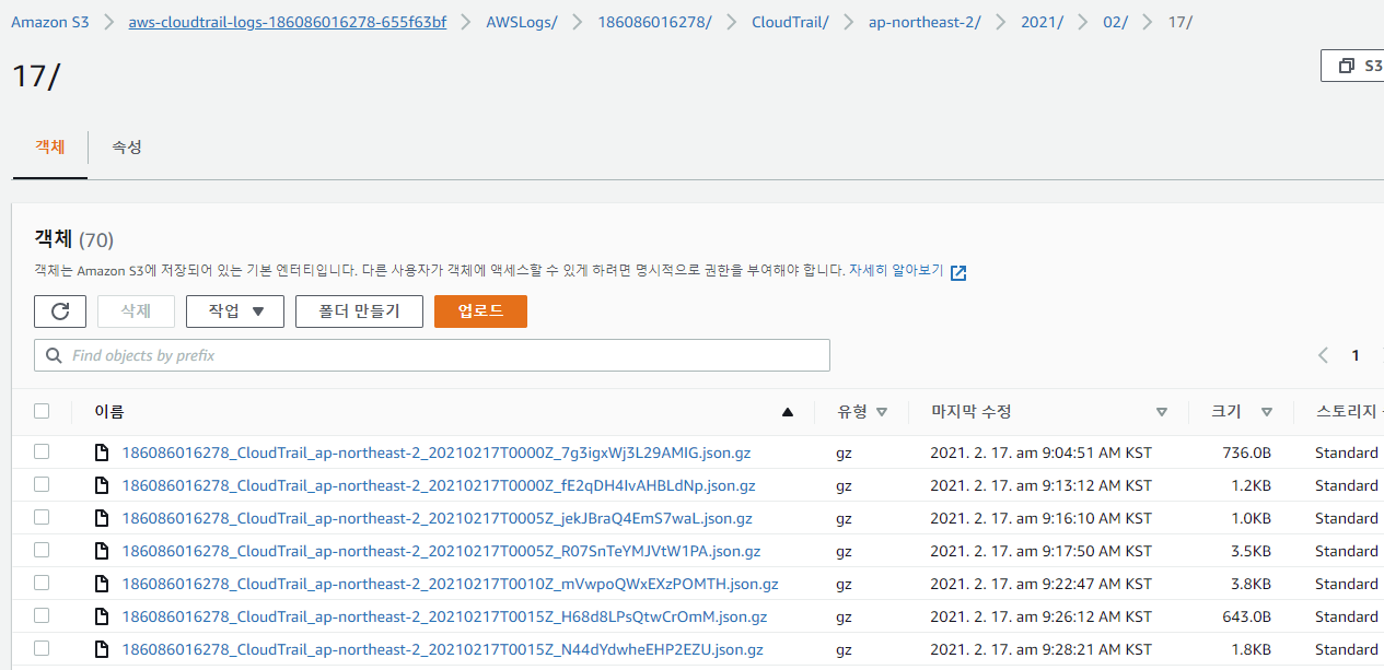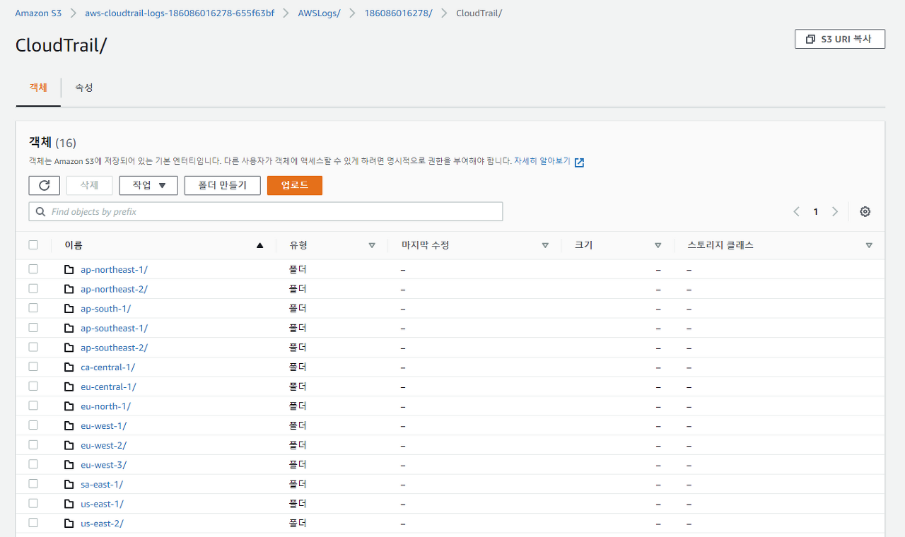 → 다중 리전 추적 기능을 제공하므로 모든 리전의 정보가 나타난다. 따라서, 본인이 해당하는 리전에 대해서 로그 정보를 확인하면 된다.