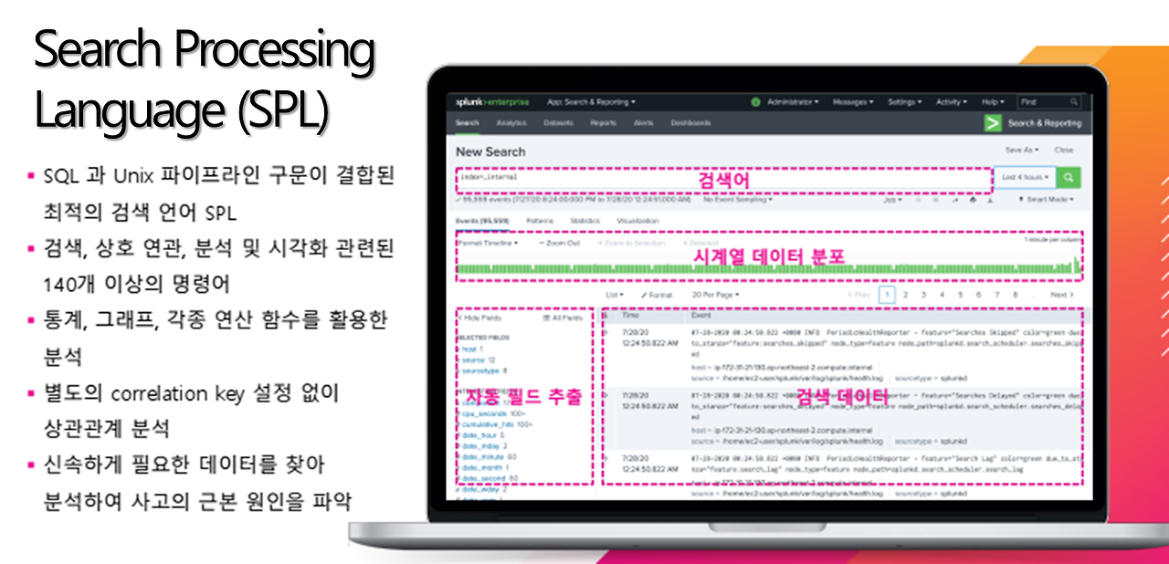 Splunk의 검색 언어인 Splunk Processing Language(SPL)은 이러한 데이터를 검색하고 분석하기 위한 강력한 도구입니다.