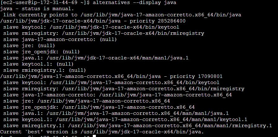 sudo dnf update sudo dnf install java-17-amazon-corretto-devel java -version //이때, java의 버전이 변경되지 않았다면 아래의 명령어로 수정합니다. sudo alternatives --config java