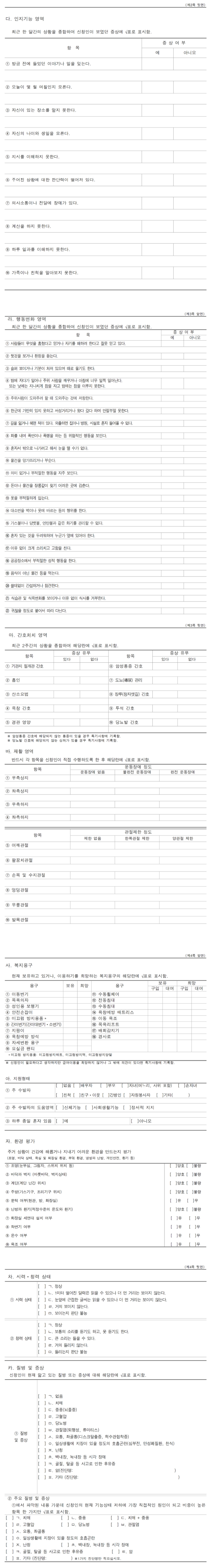 - 장기요양인정 조사표(인지, 재활 등90항목)