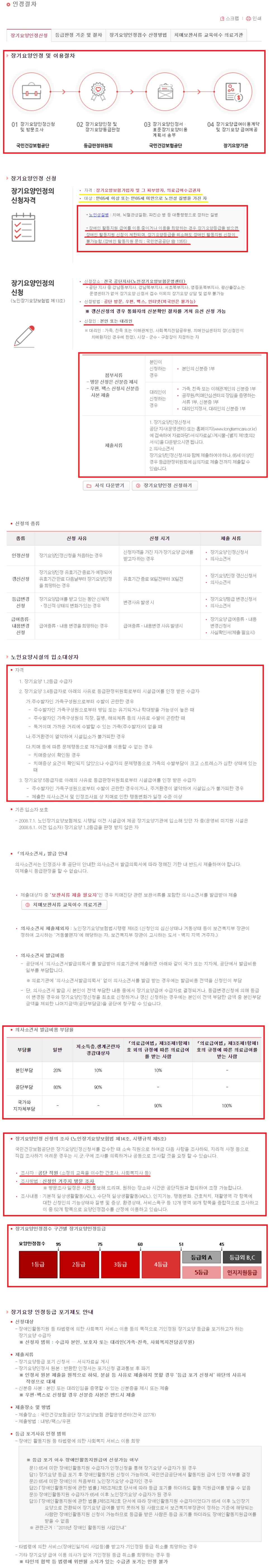 2. 장기요양 등급판정 기준 및 절차