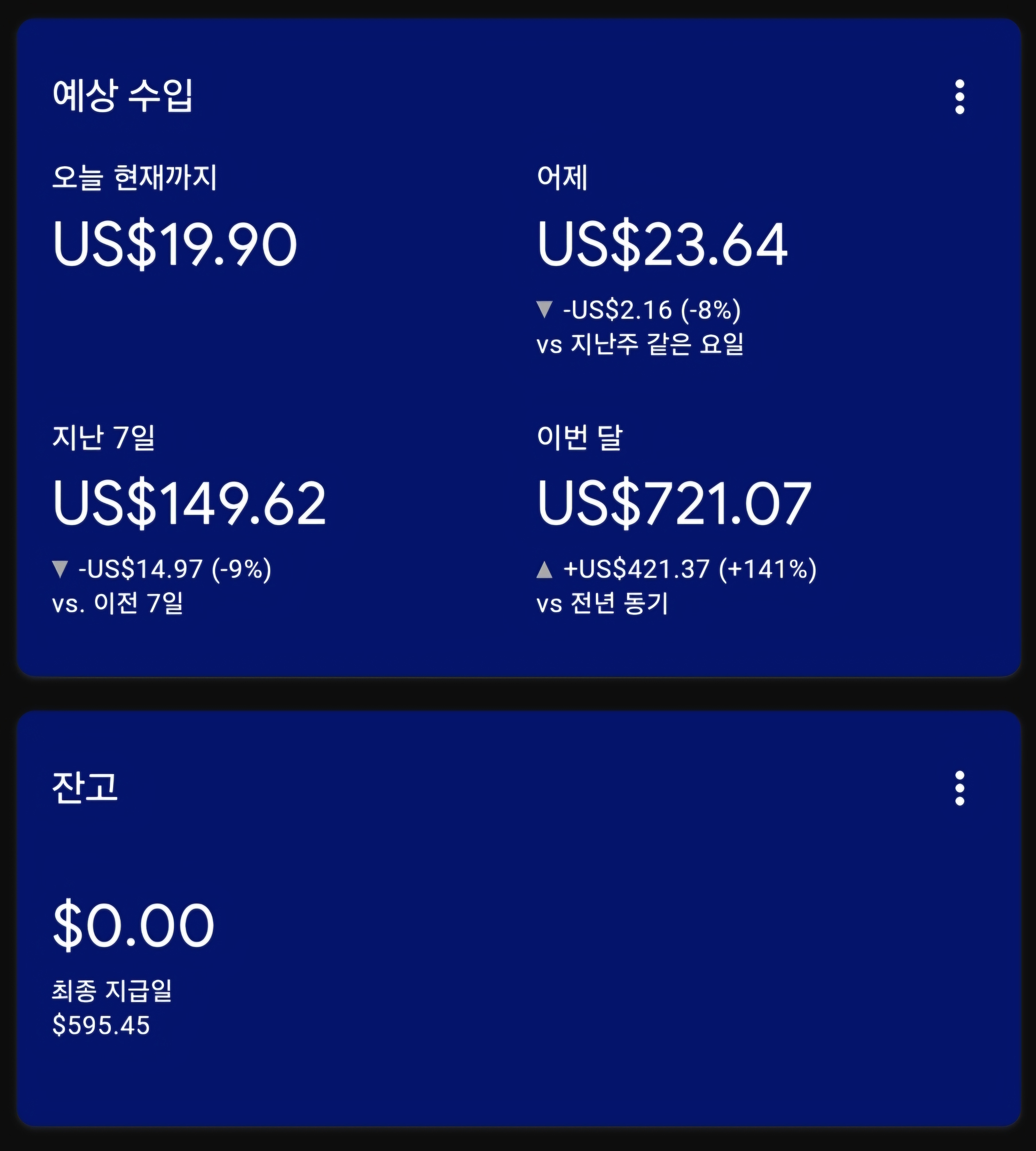 | [인터넷건물주 - 7월 월세] US $592 돌파 - AdSense & Dable 입성 7/25일!! (43) | 2024.07.26 |