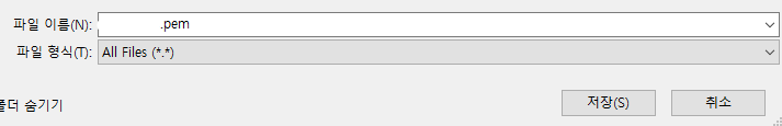 파일 명 정해주시고 .pem 확장자를 붙여줍니다.