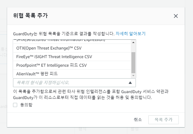 추가적으로 설정-목록 메뉴를 통해 신뢰할 수 있는 IP 목록을 추가하여 신뢰할 수 있는 소스 아이피는 모니터링에서 제외하거나, 위협적인 IP 목록을 설정하여 모니터링 대상 범위를 좁히는 것이 가능합니다.