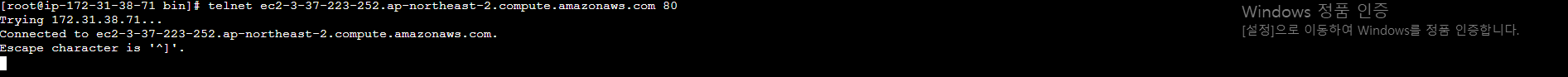 그 이후 telnet + 내가 접속하려고 하는 인스턴스의 DNS 주소 혹은 RDS의 앤드포인트를 작성한 후 + 포트번호를 입력하면 연결을 확인할 수 있다.