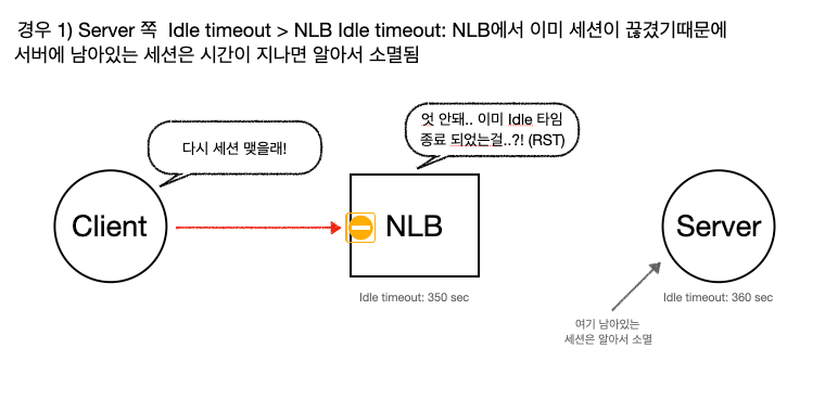 AWS에서 서버측 idle timeout을 LB에 설정된 idle timeout보다 크게 설정하기를 권고하는 이유에 대해서는 설명되어 있지 않지만… 그냥 예상해보건데 LB의 idle timeout보다 서버의 idle timeout이 작을 경우 이미 서버에서는 종료된 세션인데 ELB에서는 Idle time이 아직 지나지 않은 것 즉, 살아있는 세션으로 생각하여 서버로 요청을 보내게 되니깐 이를 방지하기 위해서이지 않을까한다.