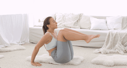 매트에 엉덩이를 대고 앉아 손으로 바닥을 지탱합니다. 상체를 뒤로 젖히면서 다리를 공중으로 뻗습니다. 상체를 세우면서 무릎을 당겨주세요. 다시 원래 자세로 돌아옵니다. 이 동작을 반복하세요.
