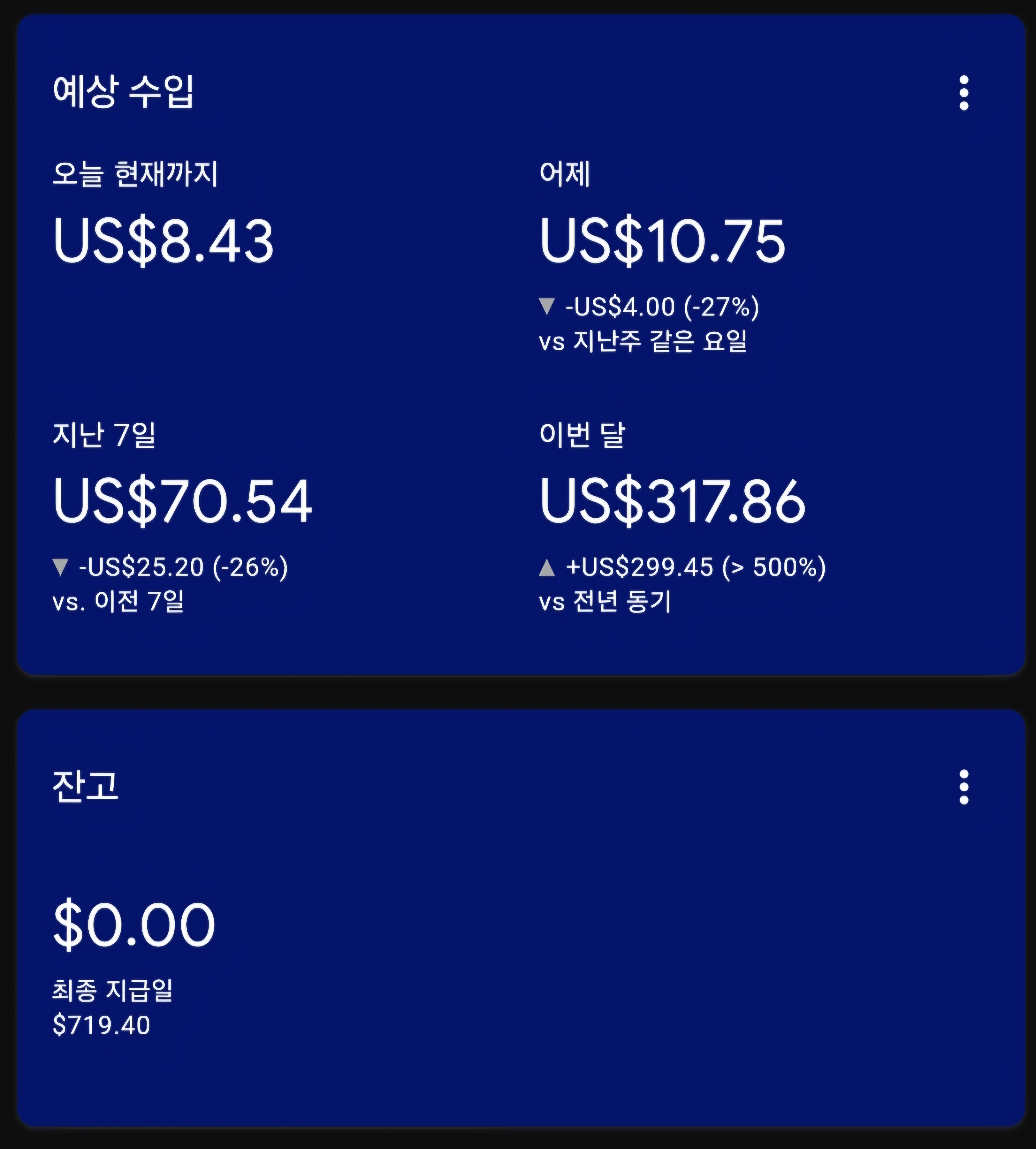 | [인터넷건물주 - 8월 월세] US $364 돌파 - AdSense & Dable 입성 8/31일!! (16) | 2024.09.01 |