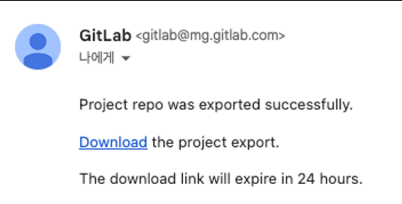 4. 약간 기다리면 GitLab에서 설정한 Public Email로 메일이 한 통 옵니다. 메일에서 다운로드 링크를 클릭하여 파일을 다운로드합니다.