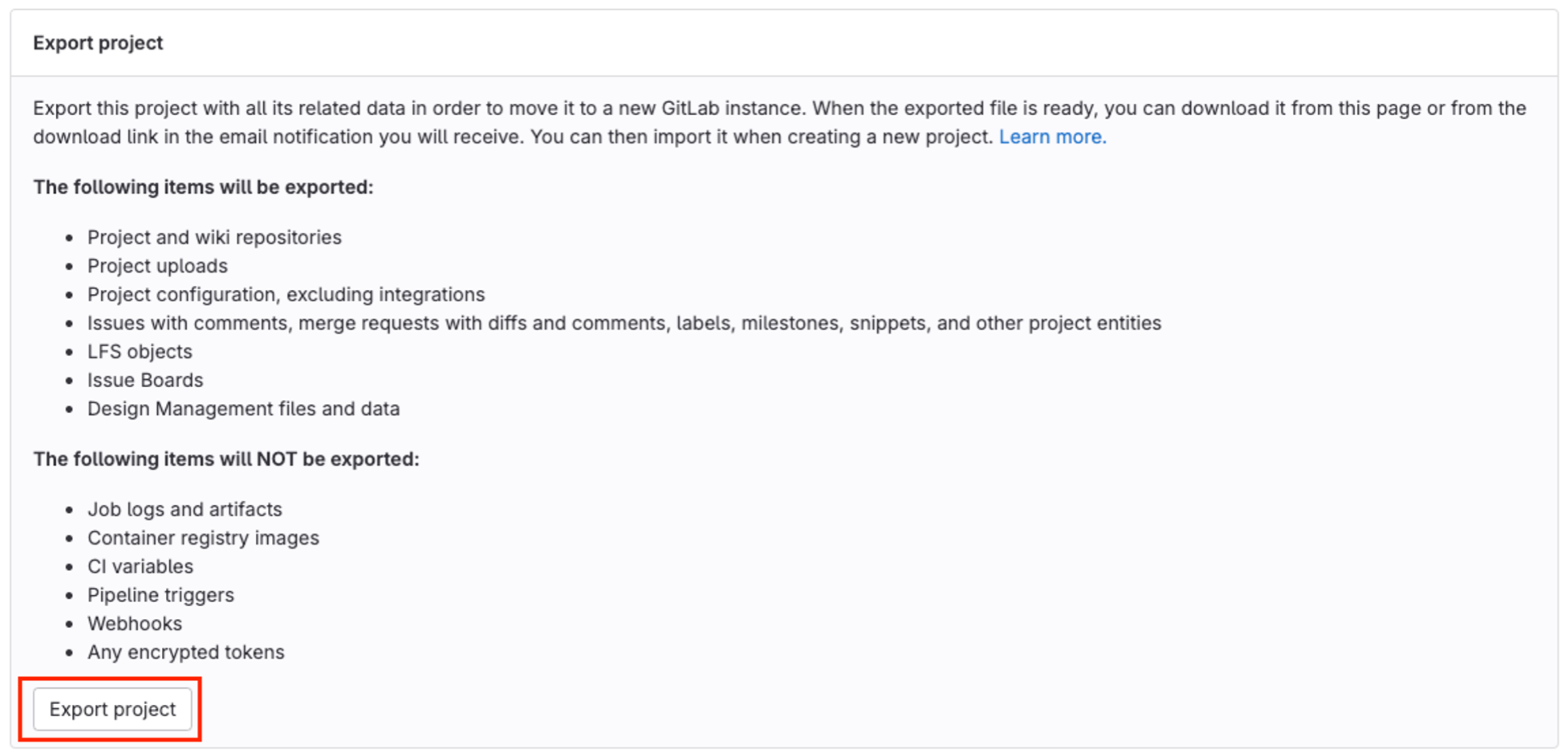 이렇게 하면 프로젝트의 모든 데이터를 다른 GitLab 인스턴스로 이전할 수 있습니다.