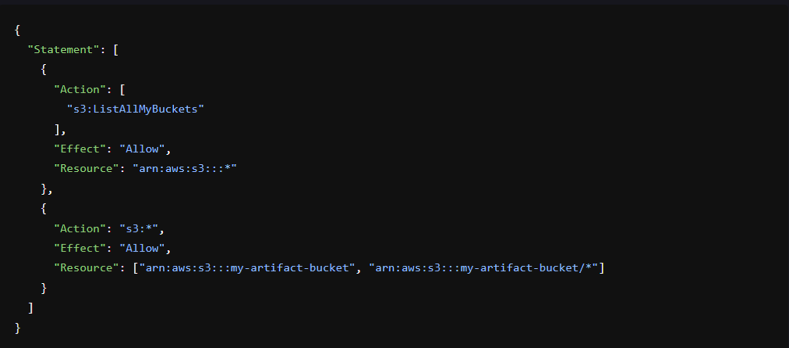 "Resource": ["arn:aws:s3:::my-artifact-bucket", "arn:aws:s3:::my-artifact-bucket/*"]
