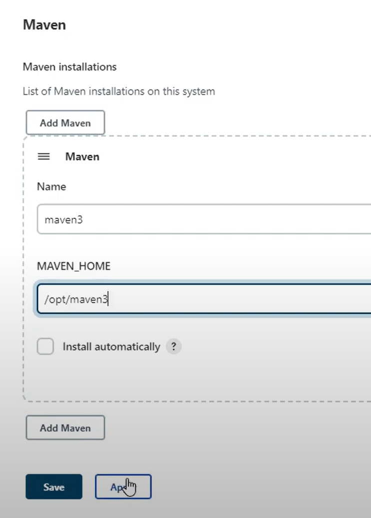 - Manage Jenkins ==> Global Tool Configuration ==> Maven