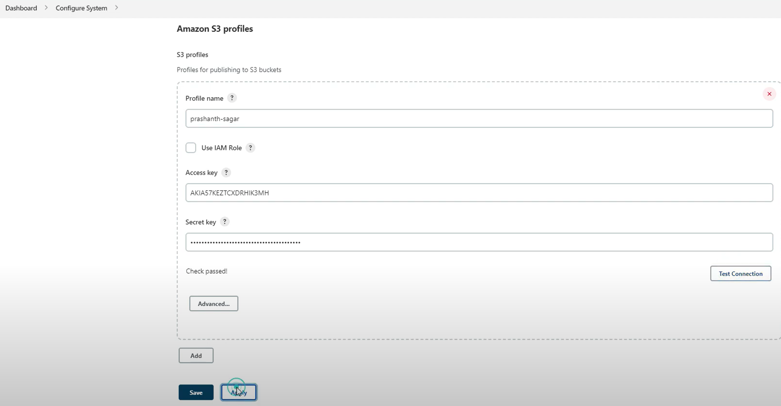 ## 젠킨스 Configure System ==> Amazon S3 profiles 이동 및 설정