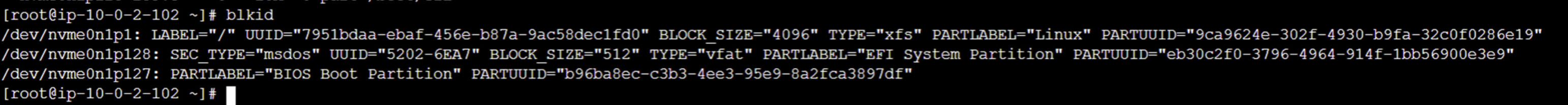 /dev/nvme0n1p1: LABEL="cloudimg-rootfs" UUID="ce780dbf-6f70-412d-87dd-61654730a231"