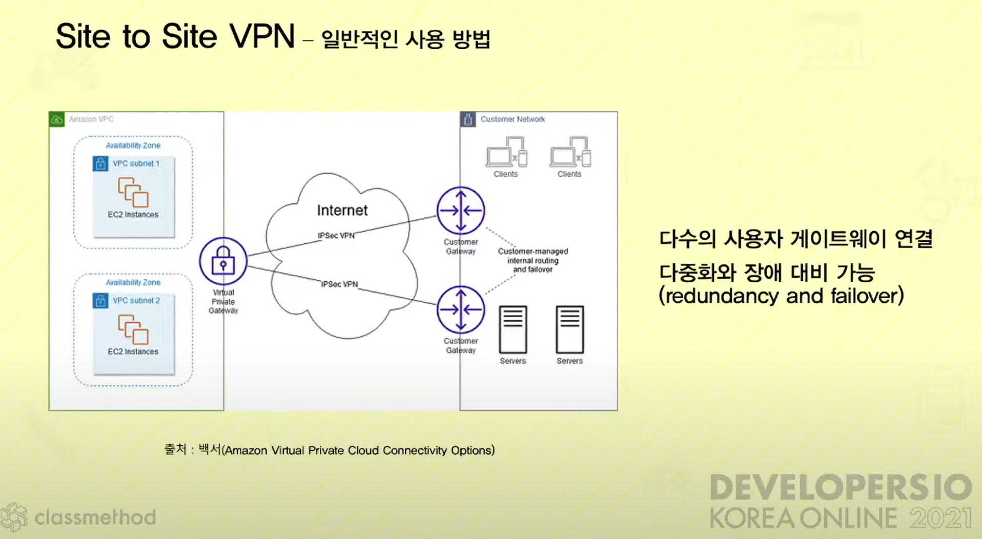 - 한 리전당 가상 프라이빗 게이트웨이 최대 5개 생성 가능