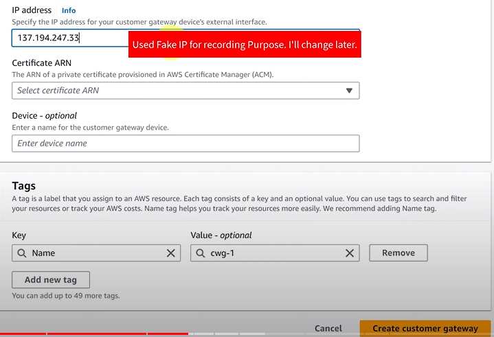 ## VPC ==> VPN ==> Customer Gateways 클릭