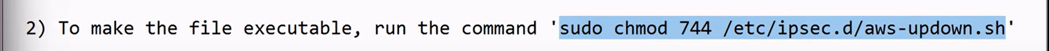 - sudo chmod 744 /etc/ipsec.d/aws-updown.sh 권한변경