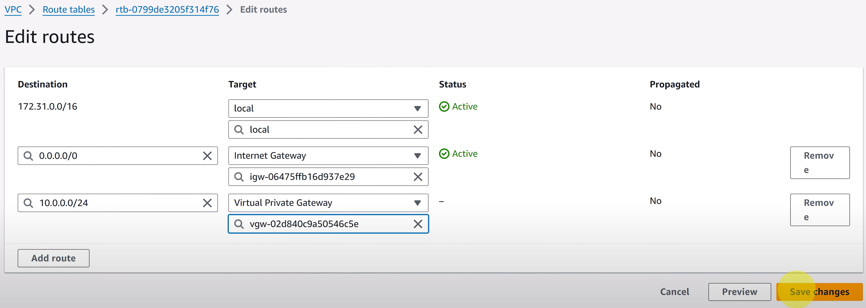 - 10.0.0.0/24 (IDC대역 ==> VGW 설정)