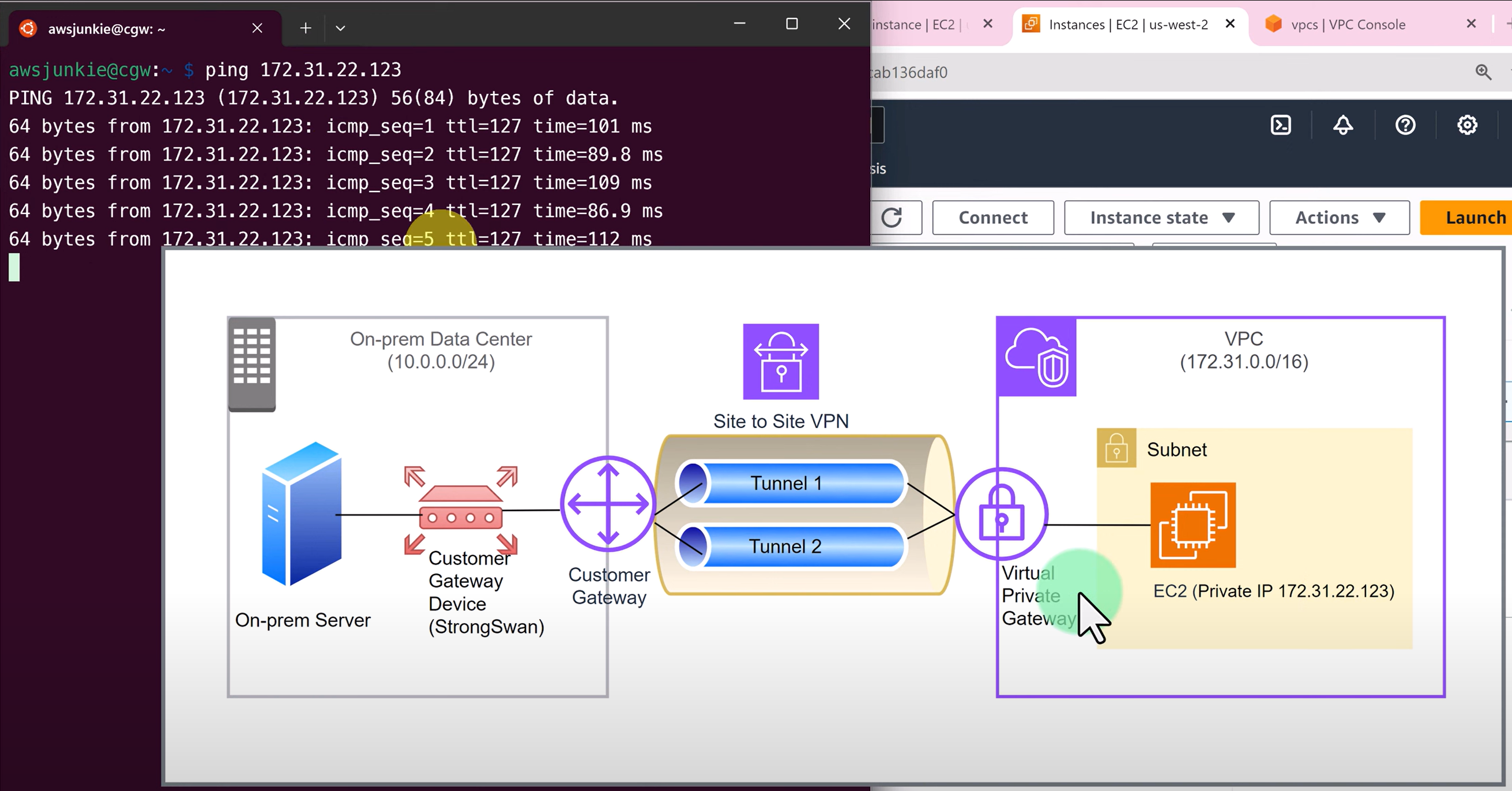 - IDC ==> AWS EC2 PING 테스트 성공 (172.31.22.123)