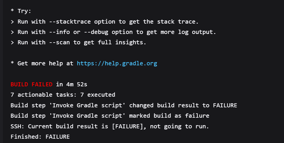 Build step 'Invoke Gradle script' changed build result to FAILURE