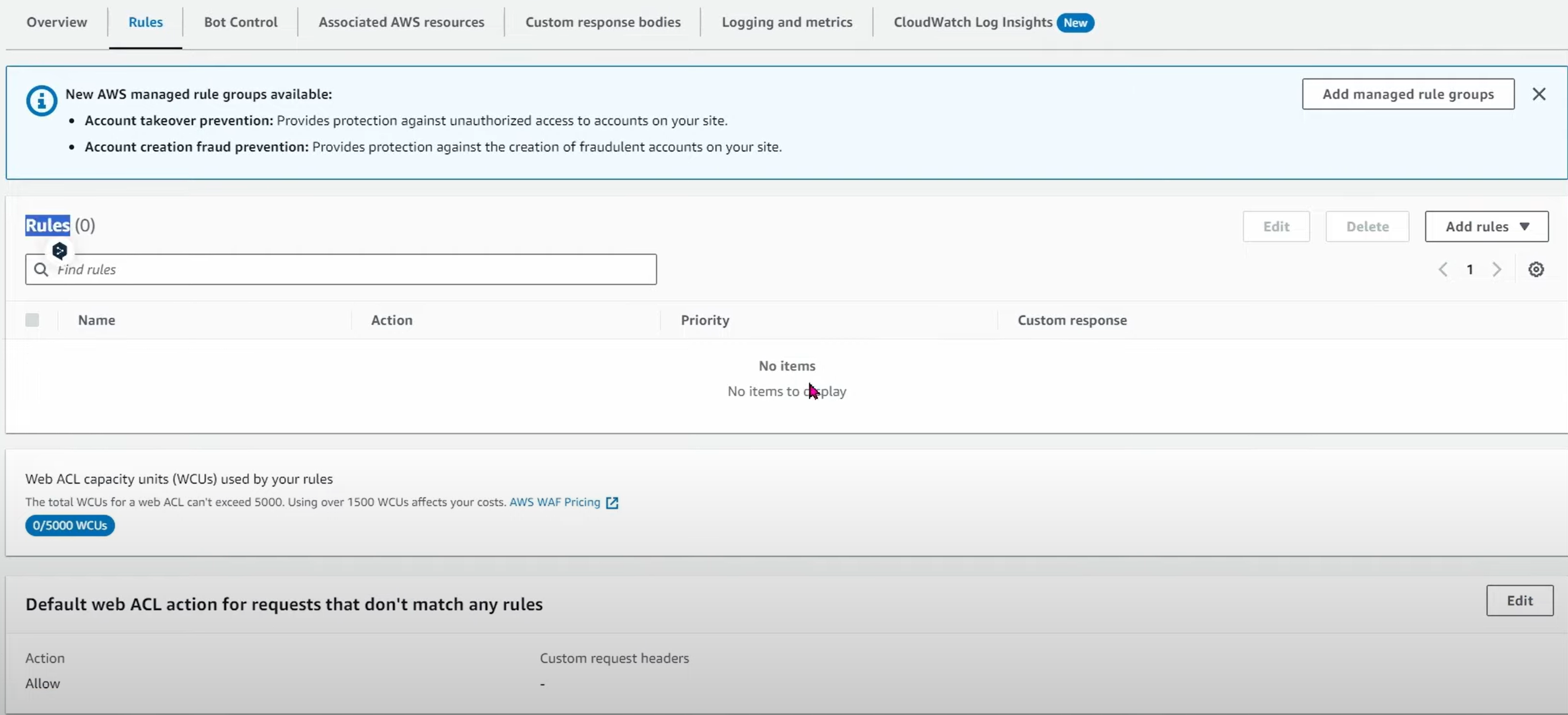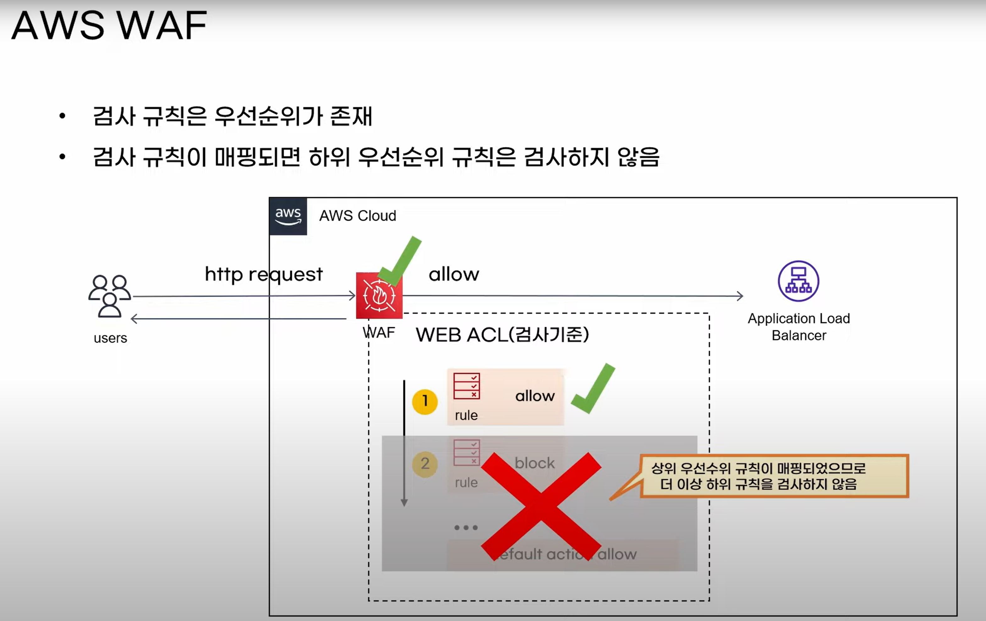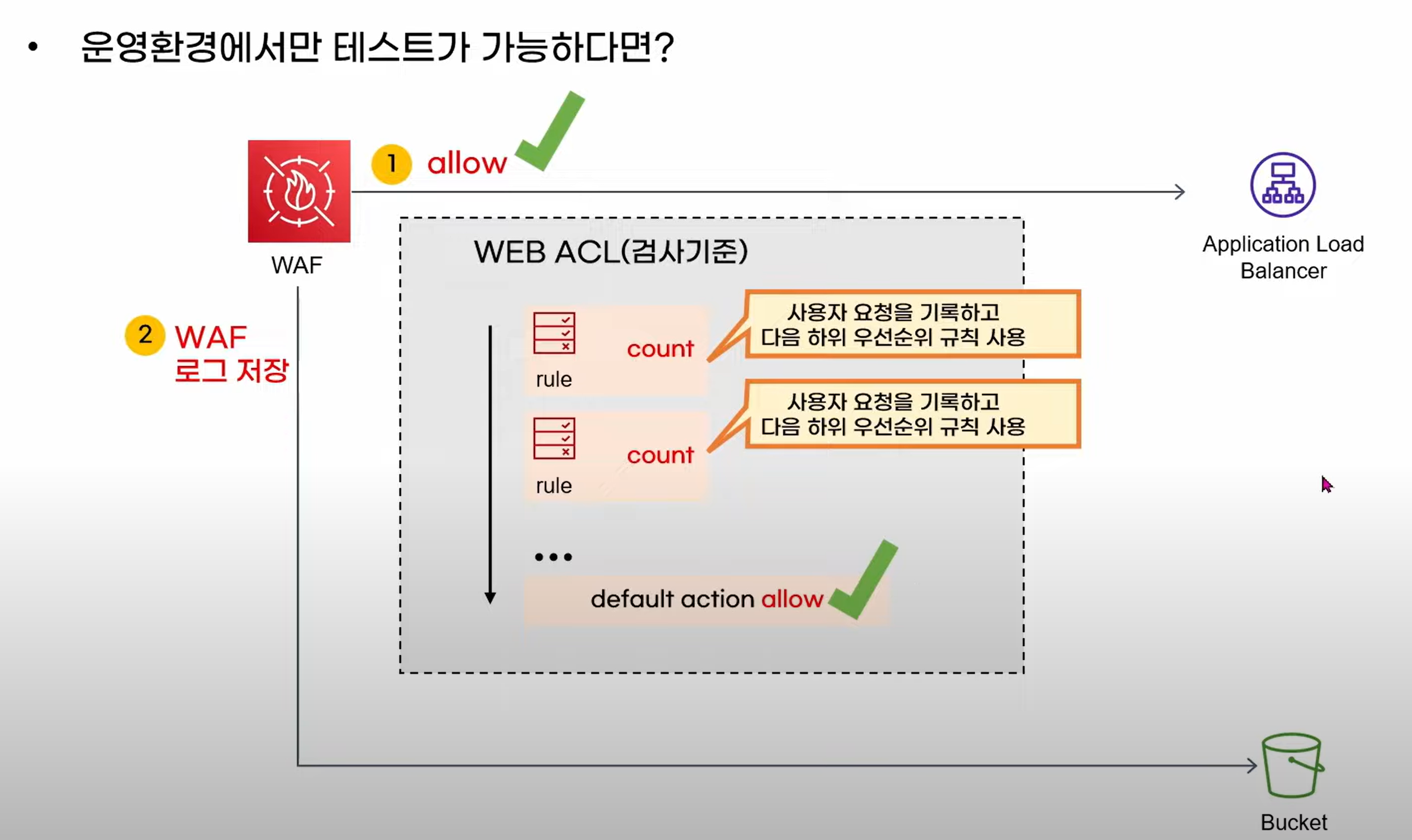 - Default Web ACL 은 Allow 설정