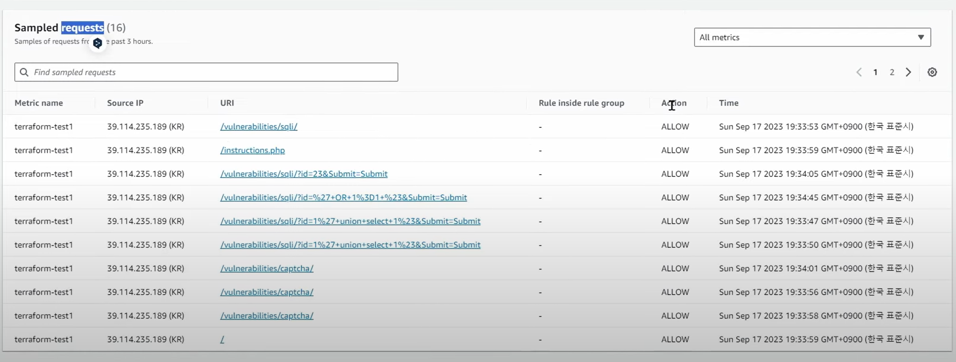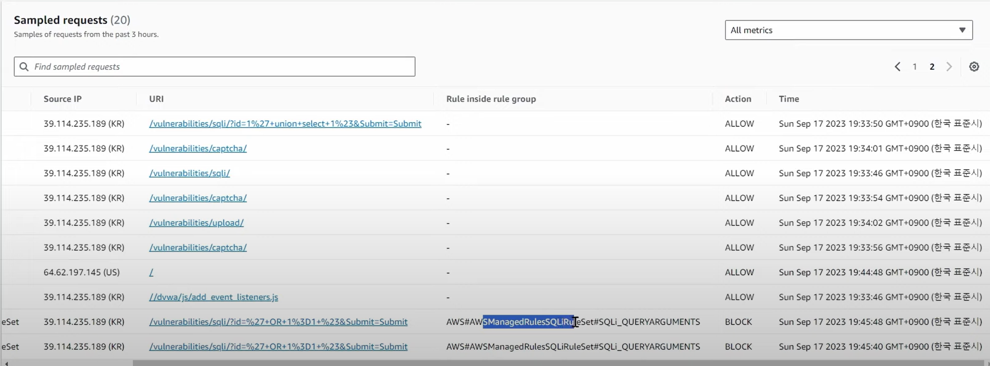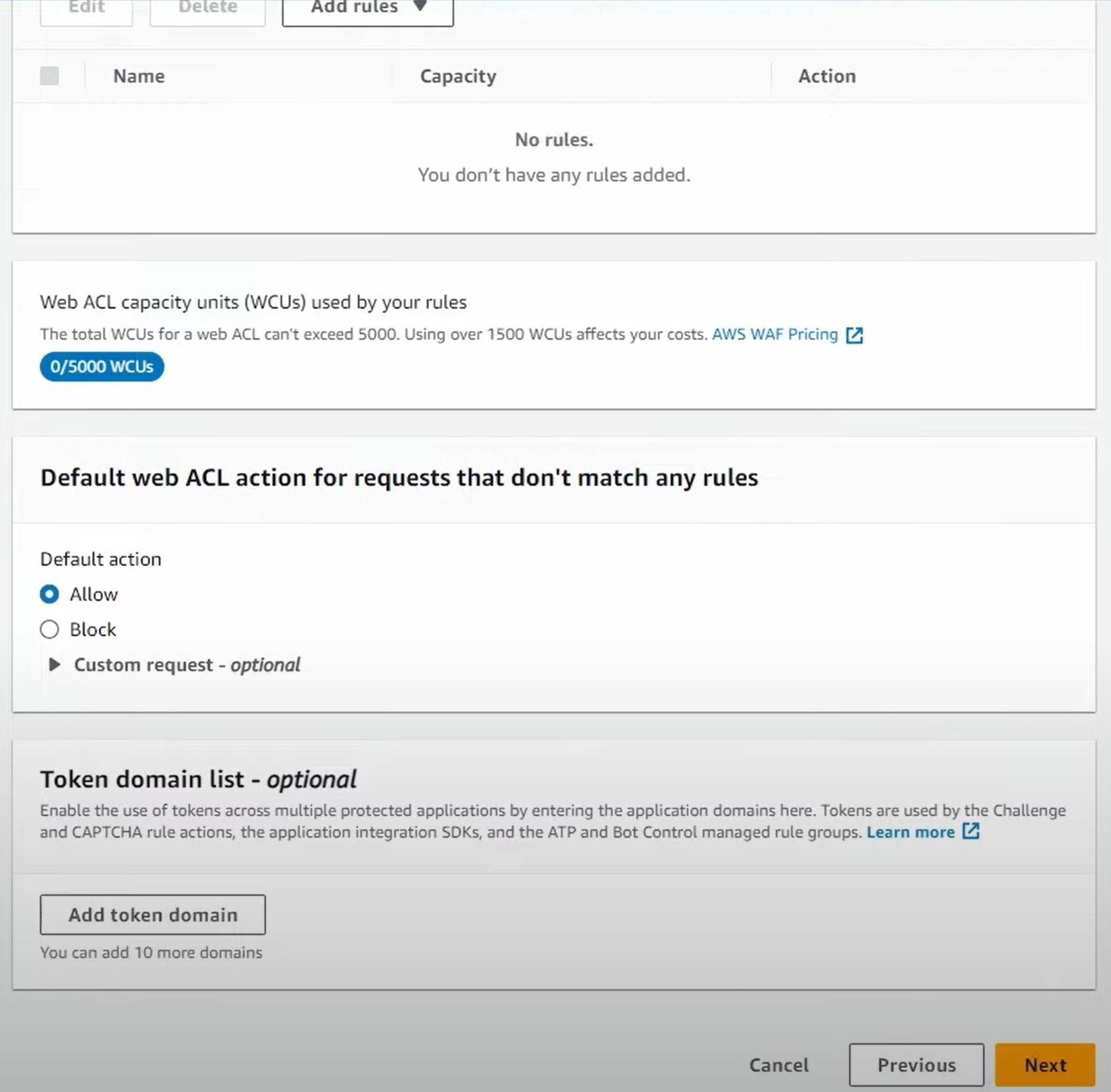 - Default Web ACL 은 Allow 설정