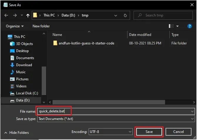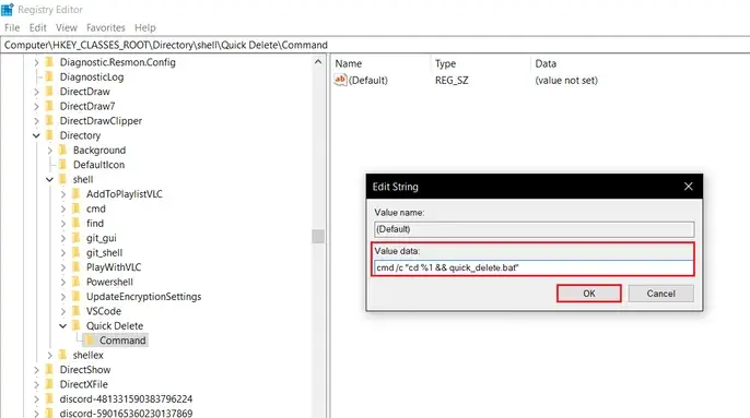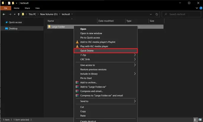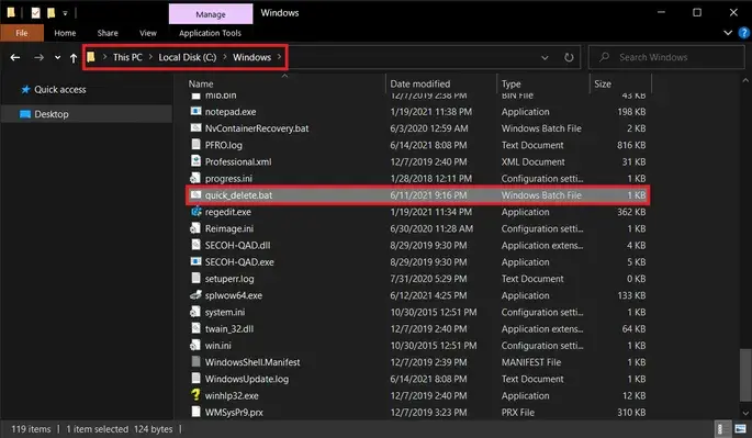 Note:빠른 삭제 옵션을 추가하려면 quick_delete.bat 파일이 자체 PATH 환경 변수가 있는 폴더에 있어야 합니다. Windows 폴더의 경로 변수는%windir%.