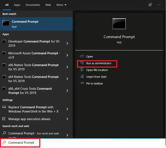 1. 클릭Start및 유형powershell을 클릭한 다음Run as administrator.
