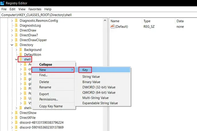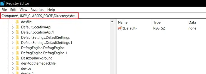 9. 이동HKEY_CLASSES_ROOTDirectoryshell아래 그림과 같이.