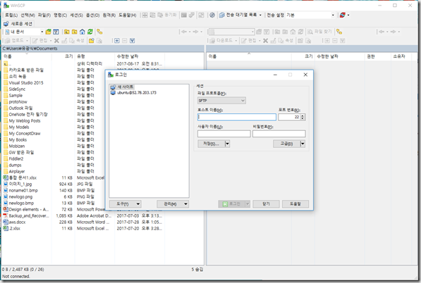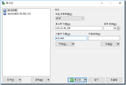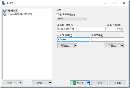 WinSCP 를 설치하고 프로그램을 실행 합니다.