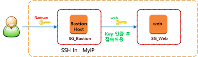 지난 포스팅에서 SSH 보안 접속을 위하여 Bastion Host 와 Web 서버의 key 를