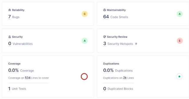 - 코드가 코딩 표준을 준수하는지, 코드 중복이 있는지, 복잡성이 적절한 수준인지 등을 평가하여 코드의 품질을 측정합니다.