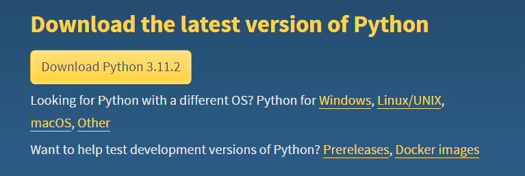 현재 컴퓨터에 파이썬이 깔려있지 않다면 파이썬을 먼저 깔아주어야 합니다.