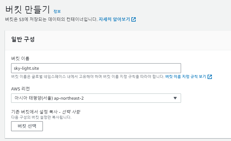 2.Bucket 이름을 리다이렉트 시키려는 URL과 동일하게 설정합니다