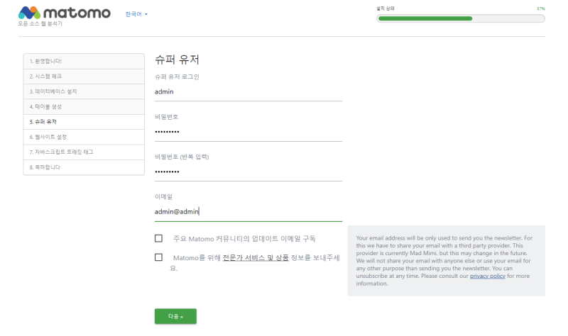 이어서 Matomo 웹 분석 솔루션을 설치해보겠습니다.