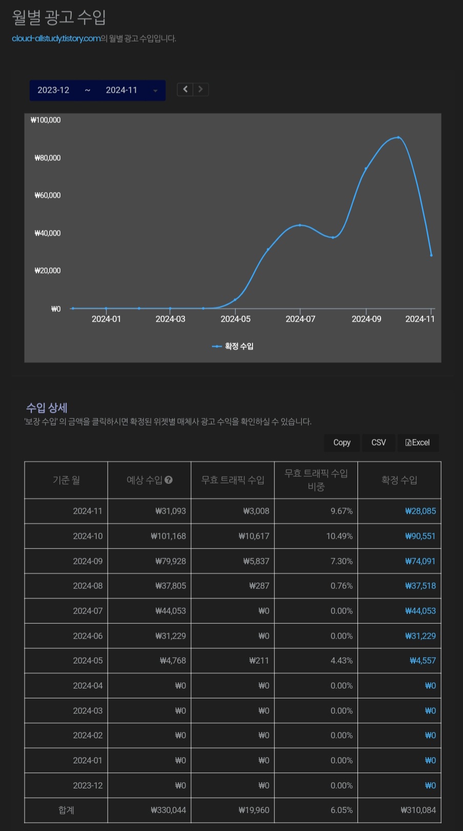 | [인터넷건물주 - 11월 월세] US $167 돌파 - AdSense & Dable 확장 11/15일!! (10) | 2024.11.16 |