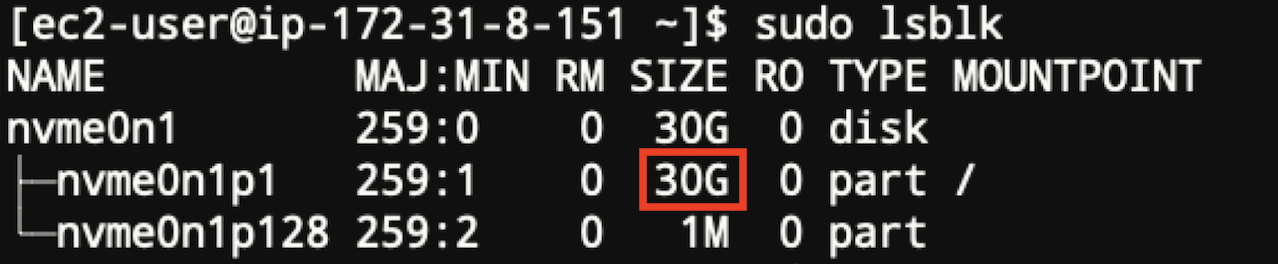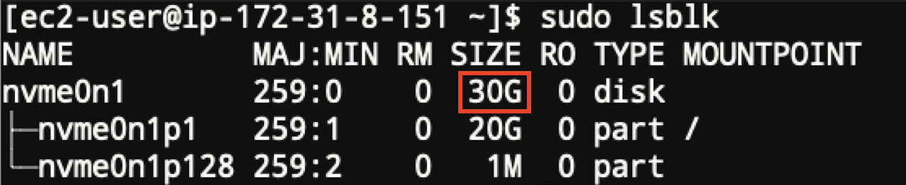4. lsblk 명령 - 파티션이 확장되었는지 확인