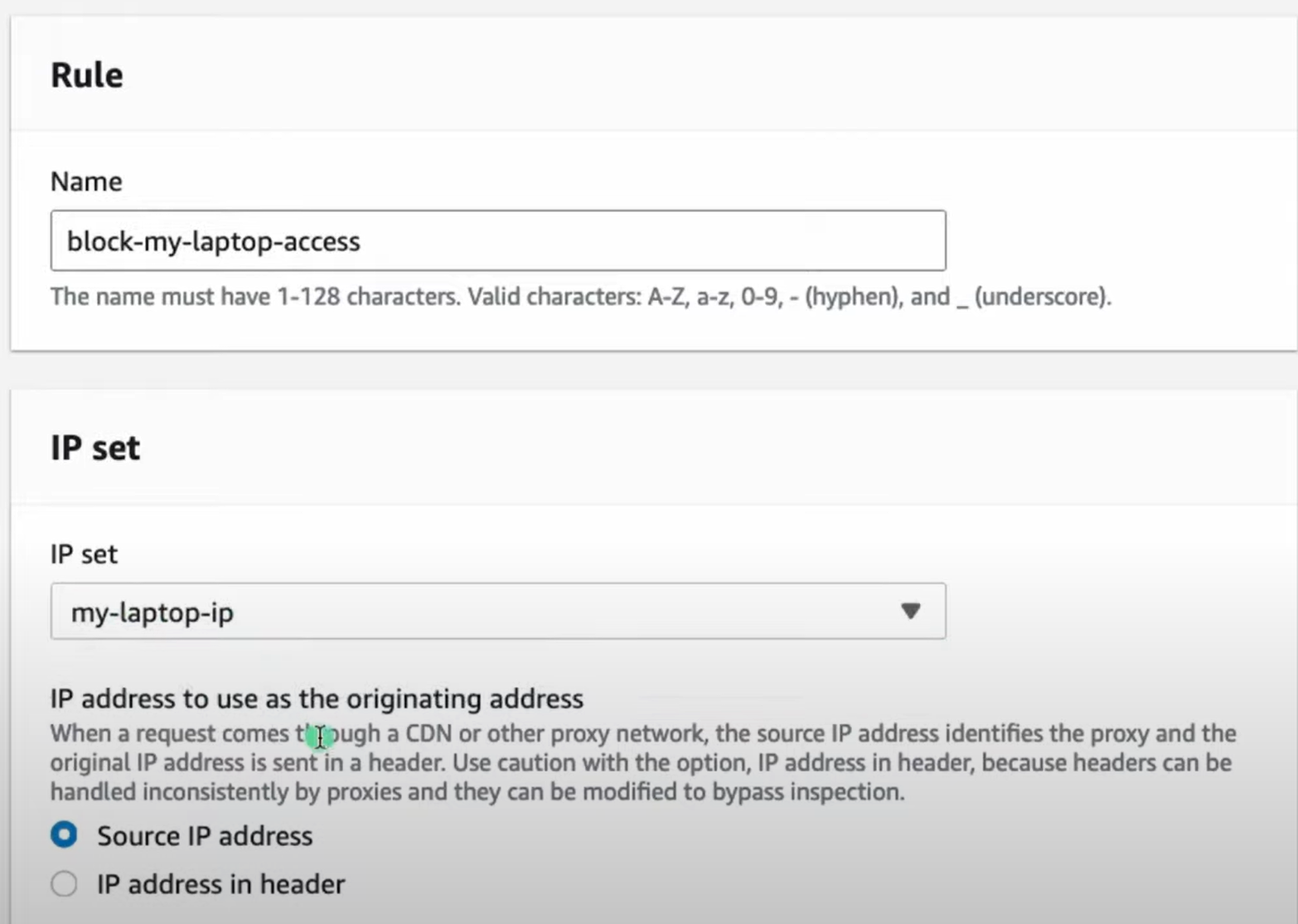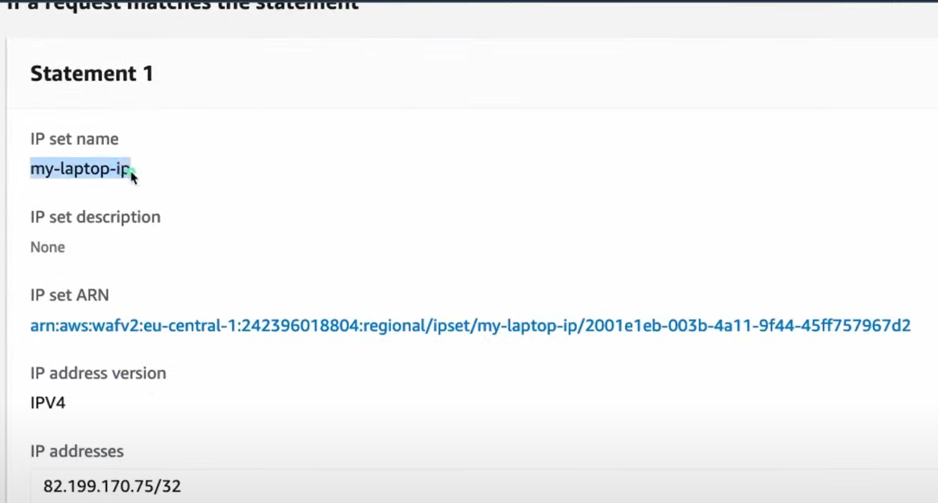 ## IP sets 생성 (차단할 IP주소 입력) ==> Create IP set