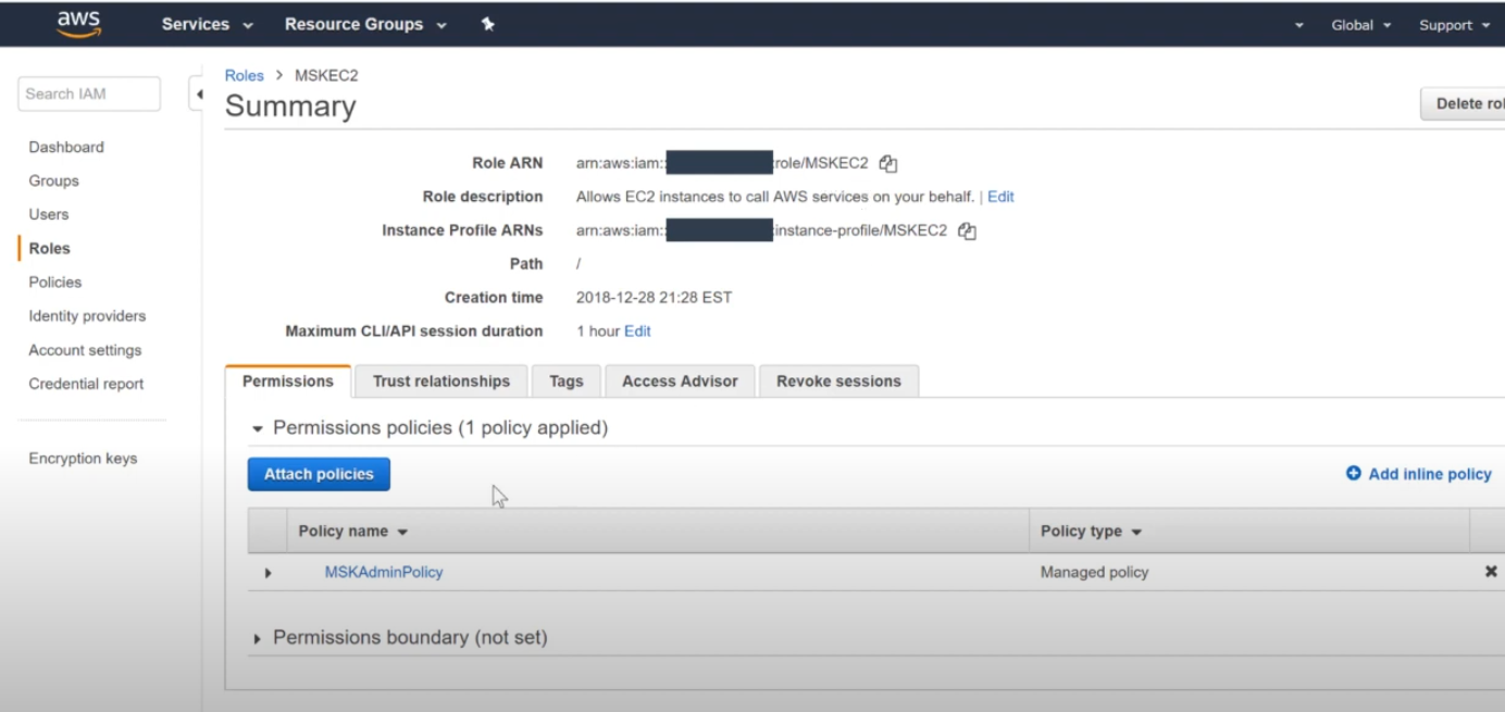 - MSK Client EC2에 IAM role 삽입