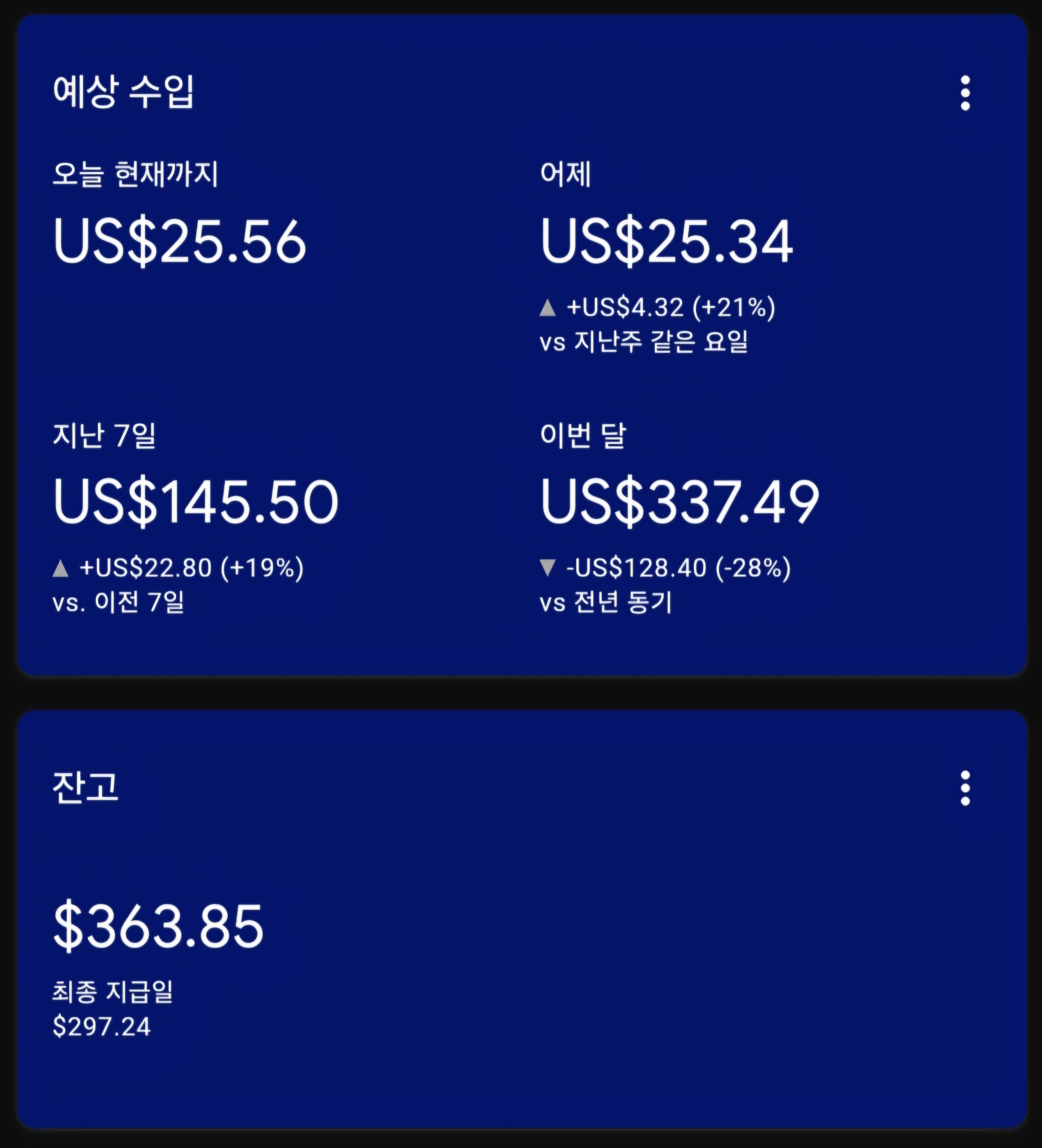 | [인터넷건물주 - 12월 월세] US $376 돌파 - AdSense 12/20일!! (46) | 2024.12.21 |