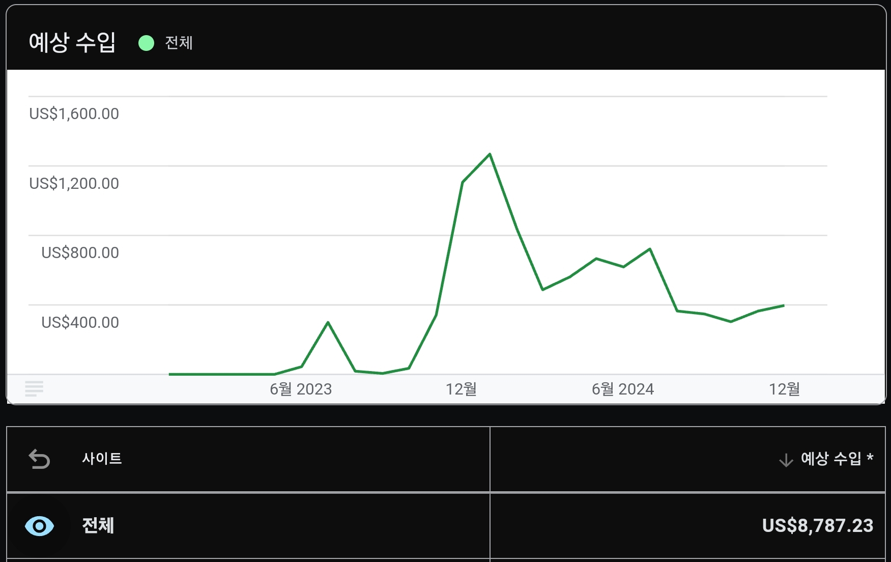 | [인터넷건물주 - 12월 월세] US $431 돌파 - AdSense 12/23일!! (42) | 2024.12.24 |