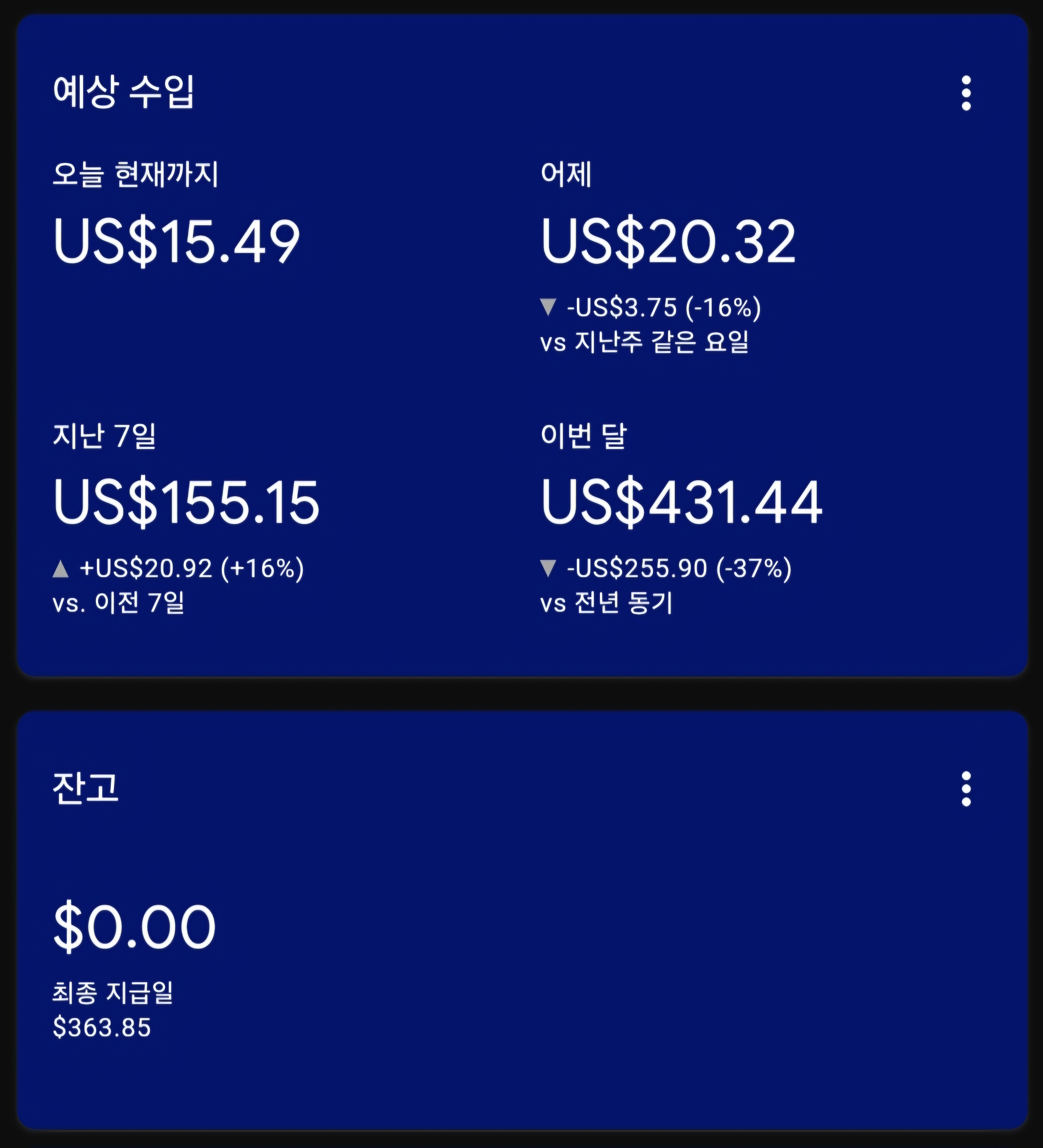 | [인터넷건물주 - 12월 월세] US $394 돌파 - AdSense 12/21일!! (47) | 2024.12.22 |