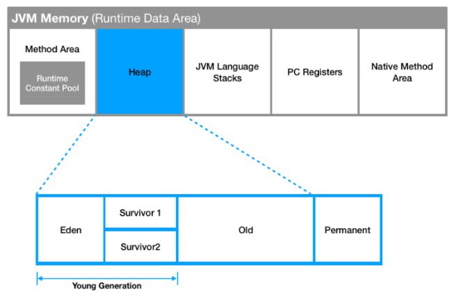 자바 힙 메모리는 일반적으로 세 부분으로 나뉩니다.