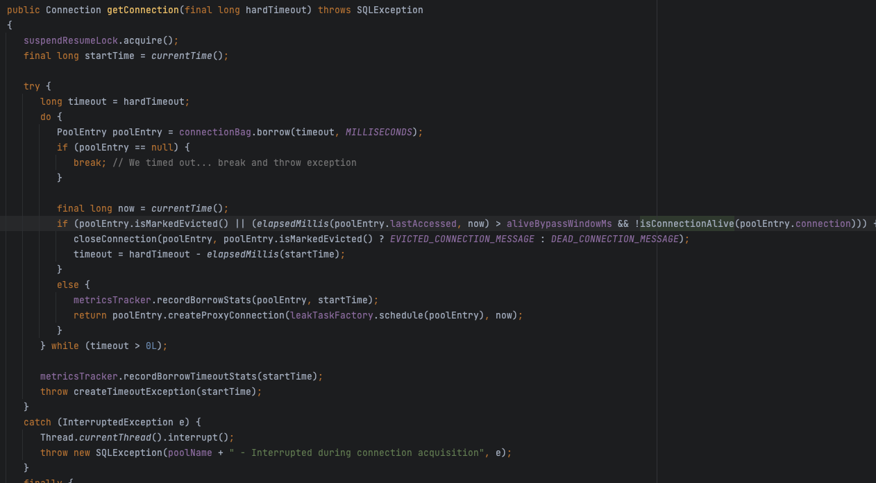 이번 이슈 원인 찾는데 결정적 도움이 됐던 HikariCP Connection Leak Logging 설정에 대해 설명하고자 합니다.
