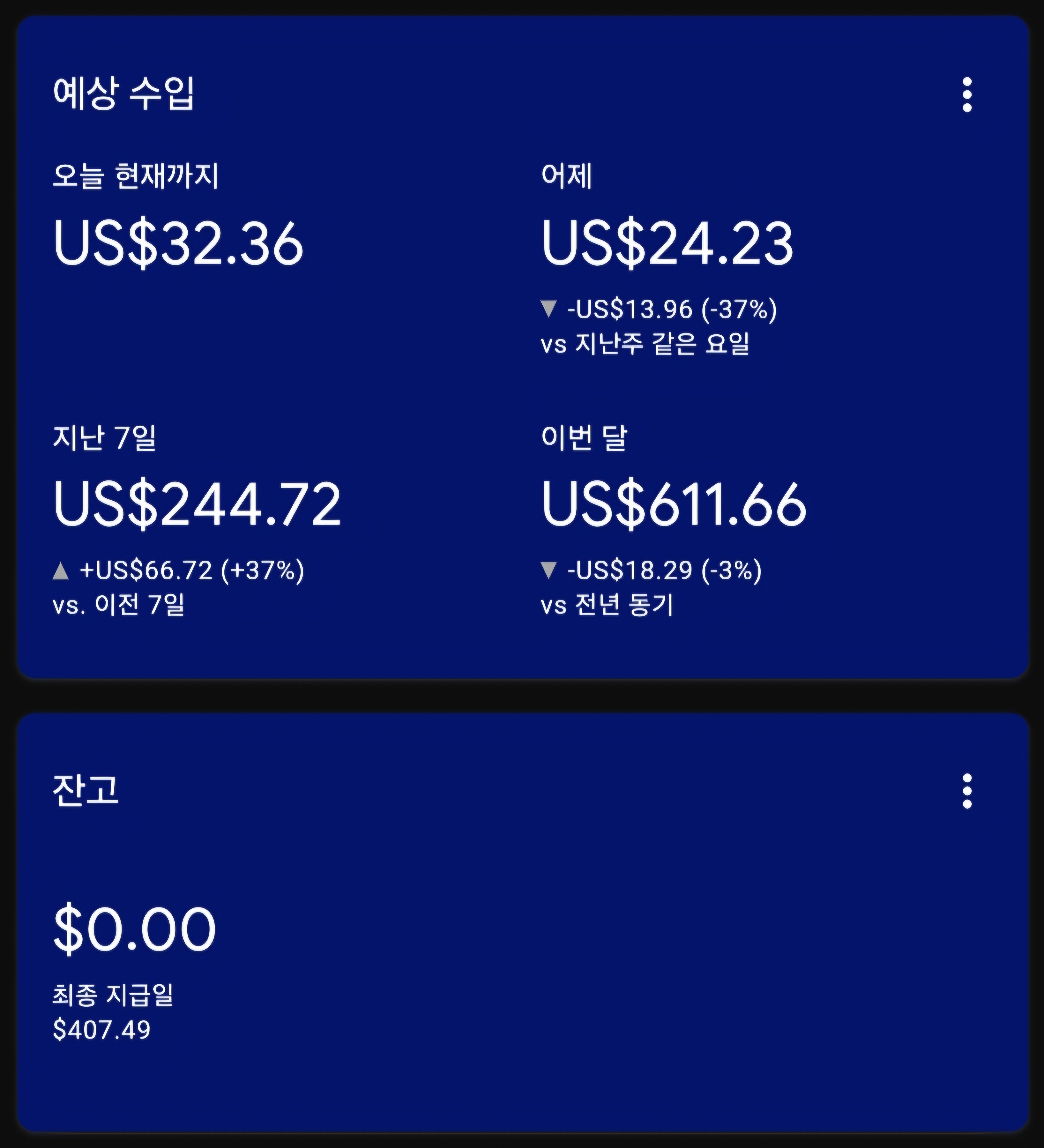 | [청담점 오픈 / 애드센스 건물주 - 3월 월세] US $375 돌파 - AdSense 3/20일!! (8) | 2025.03.21 |