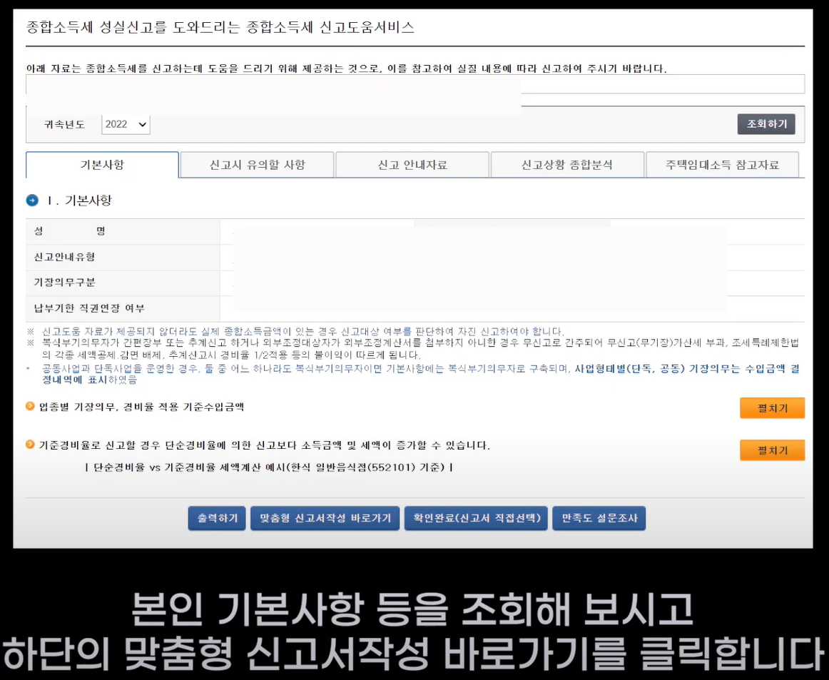 ## 기본사항 조회 ==> 맞춤형 신고서작성 바로가기 클릭